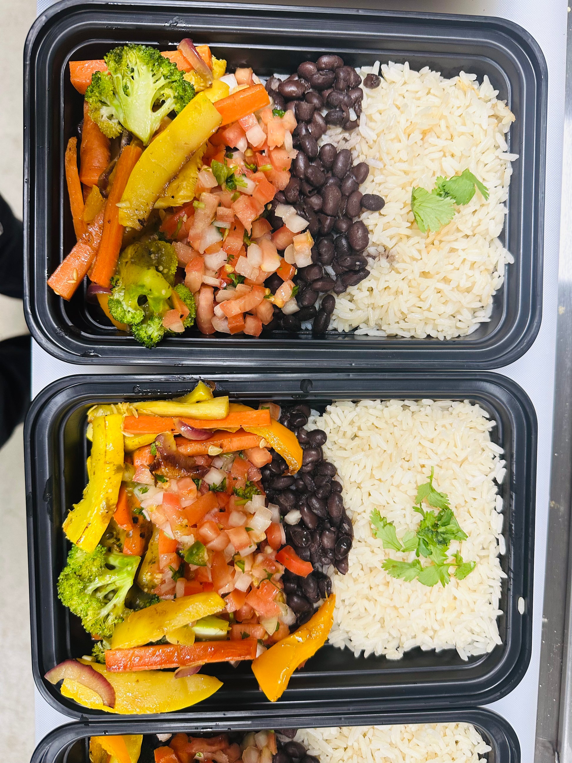 Rice with fajita vegetables, beans, pico de Gallo and mild sauce.